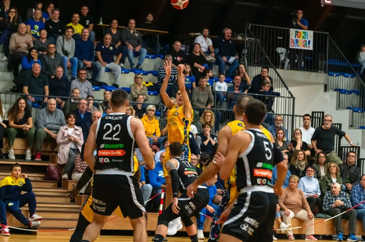 Gluditis inventa una tripla clamorosa per il 54-58 entrando nell’ultimo minuto di quarto, con San Vendemiano che tiene avanti il becco a 10 minuti dalla fine.