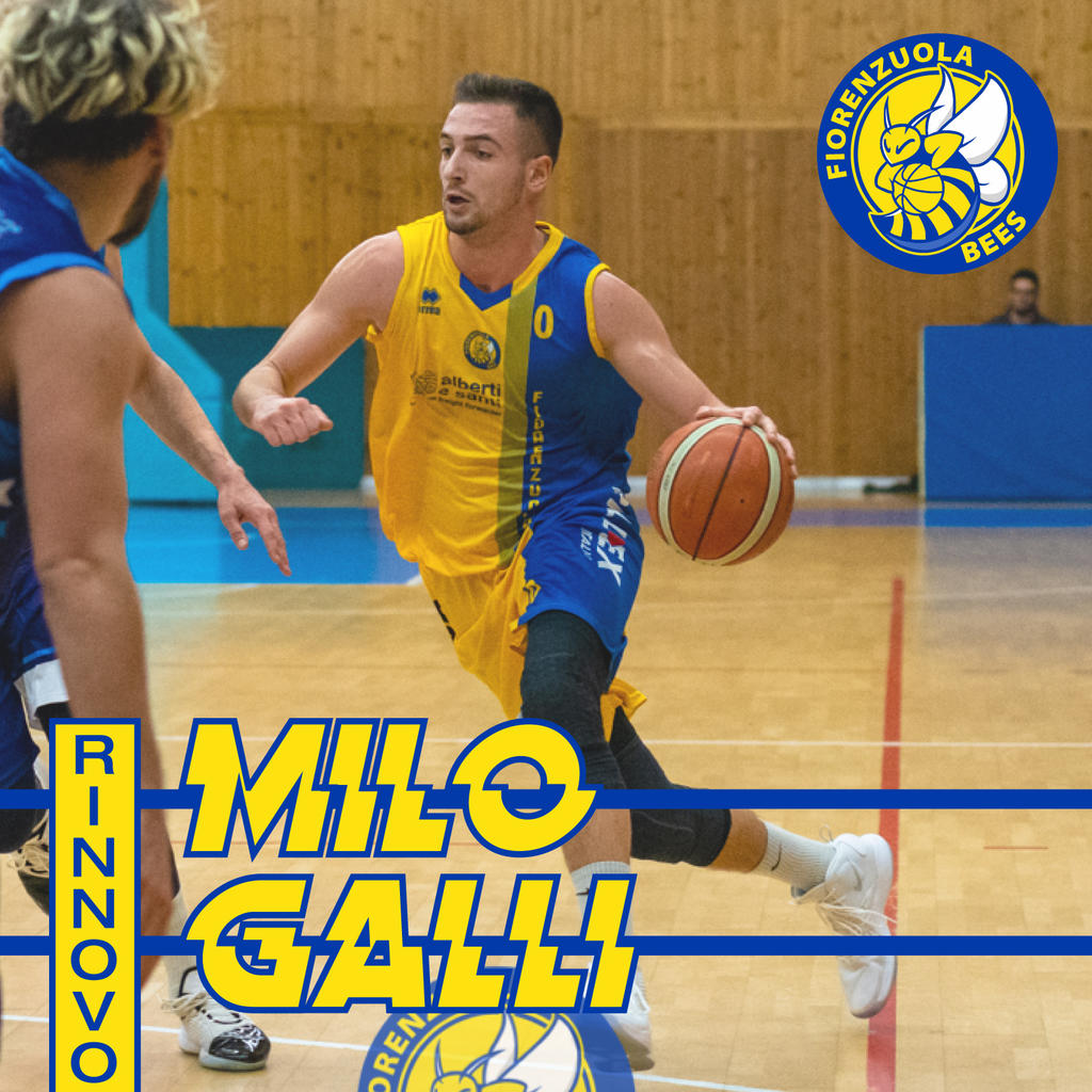 Con i Fiorenzuola Bees, Milo Galli ha collezionato in 4 stagioni la bellezza di 1212 punti, con una media di 11,1punti/gara nella sua carriera gialloblu.