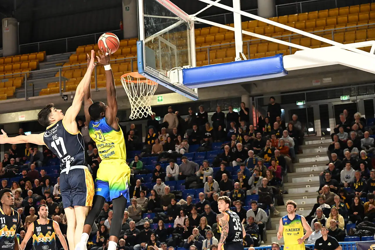 Kancleris puntella nell’ultimo minuto di quarto la schiacciata che punisce un cambio sbagliato nella difesa di Fiorenzuola, chiudendo il terzo parziale sul 63-49.
