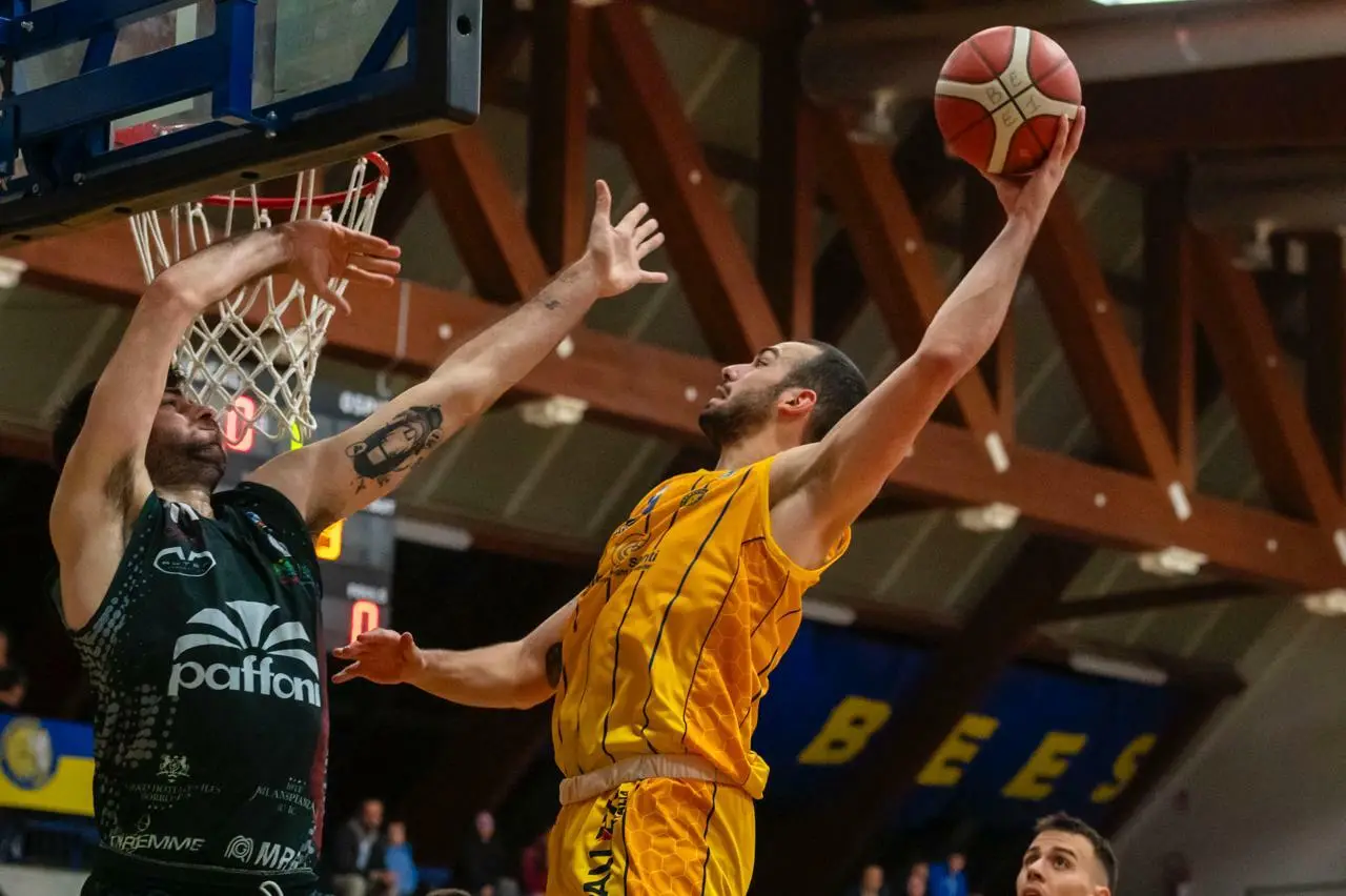 Cecchi da 3 punti incendia il PalArquato per il 52-56 al 32’, con i Bees che si esaltano e trovano in Ambrosetti il sorpasso al 33’ con il gioco da 3 punti dopo palla recuperata e contropiede. 57-56.