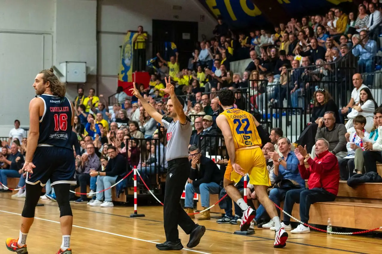 Biorac con il rimbalzo offensive e lay up anima il PalArquato, con Ambrosetti che con il palleggio, arresto e tiro impatta nuovamente in parità.